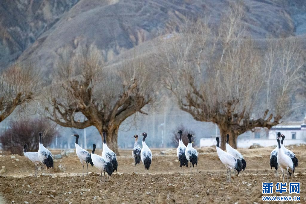 近日,一群黑頸鶴在西藏日喀則市南木林縣的雅江河畔田間覓食,神態(tài)悠閑,惹人神往。黑頸鶴是國家一級保護動物,主要棲息在海拔2500米至5000米的高原草甸、沼澤地帶。