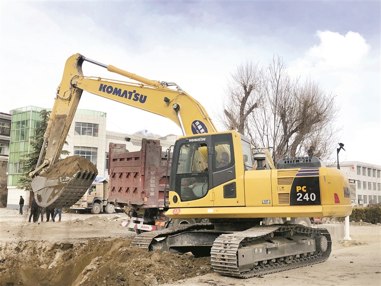 2月26日,拉薩市四所學(xué)校地下停車場項目安全有序復(fù)工,加快推進智慧停車場項目建設(shè)。圖為城關(guān)區(qū)海城小學(xué)地下停車場項目施工現(xiàn)場,挖掘機正忙碌地工作著。 拉薩融媒記者 秦曉聰攝