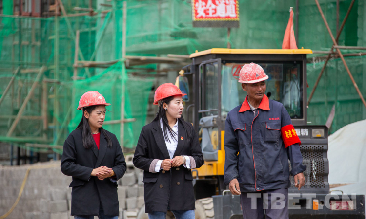 西藏的烈日之下,一位頭戴安全帽的年輕姑娘走在建筑工地上,巡視檢查著施工現(xiàn)場的安全狀況。[詳細(xì)] -