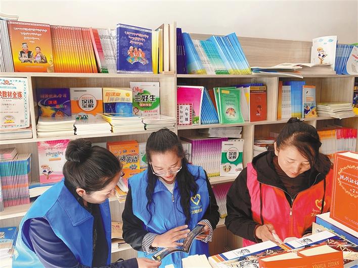 圖為檢查人員在檢查書店圖書銷售情況。記者 段敏 攝