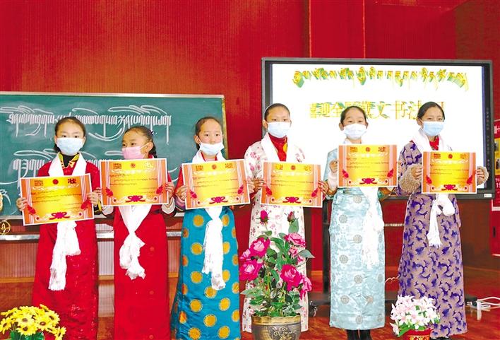 西藏山南市組織學(xué)生開(kāi)展藏文書(shū)法比賽