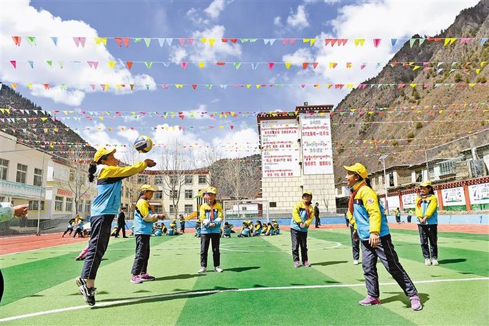 昌都市邊壩縣尼木鄉(xiāng)希望小學學生正在上體育課。記者 潘多 唐斌 攝