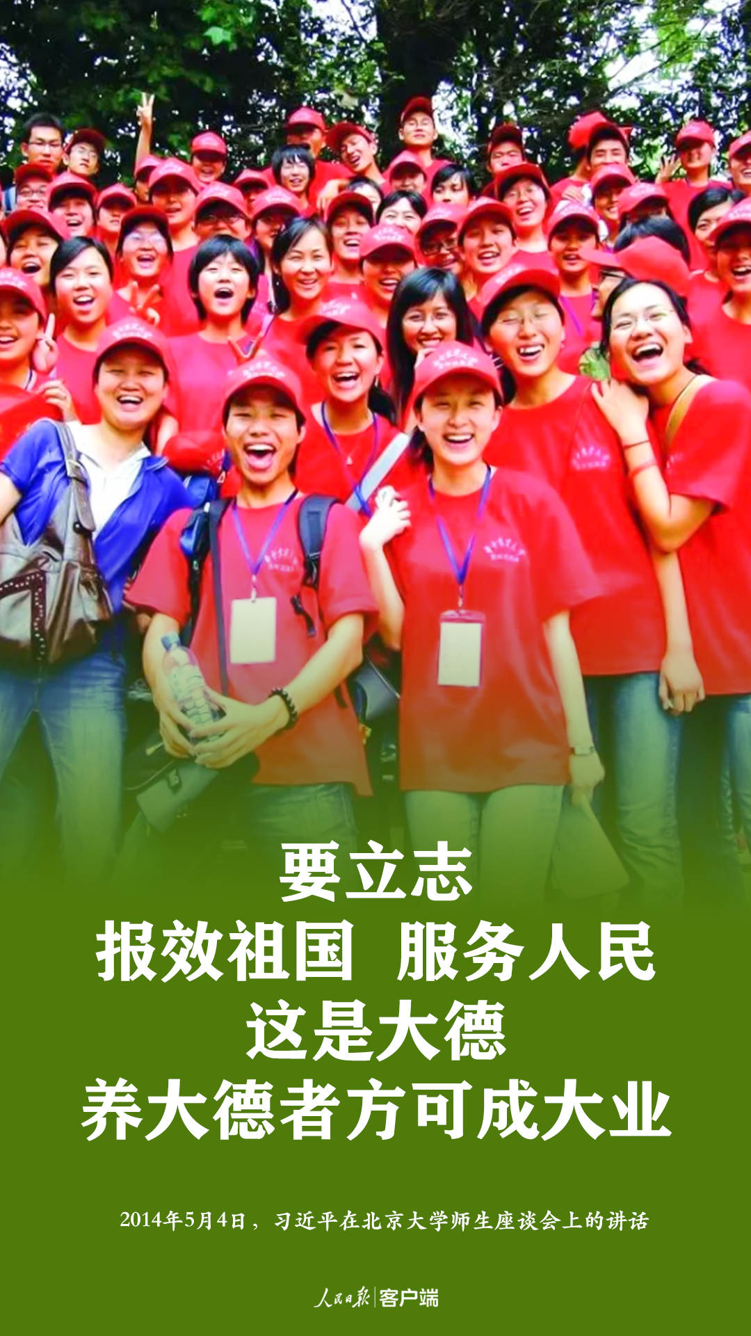 在紀(jì)念五四運動100周年大會上,習(xí)近平說,“對每一個中國人來說,愛國是本分,也是職責(zé),是心之所系、情之所歸。對新時代中國青年來說,熱愛祖國是立身之本、成才之基”。