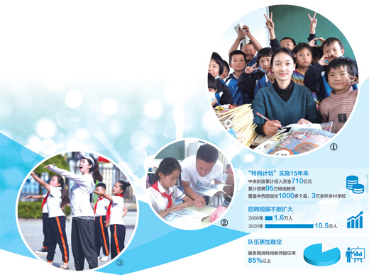 農(nóng)村義務(wù)教育階段學(xué)校教師特設(shè)崗位計(jì)劃(簡稱“特崗計(jì)劃”)始于2006年,每年公開招考選聘數(shù)萬名高校畢業(yè)生到中西部貧困縣農(nóng)村學(xué)校任教。[詳細(xì)] -