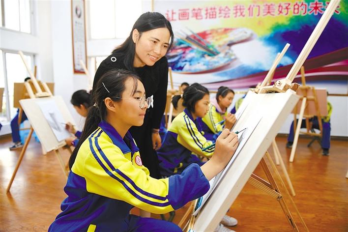 圖為昌都市卡若區(qū)第二初級中學(xué)的老師指導(dǎo)學(xué)生素描。丹增群培 攝
