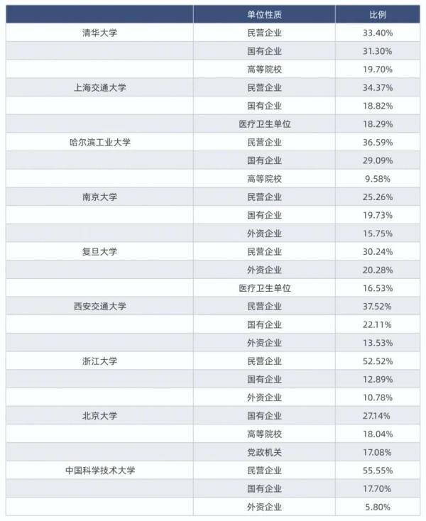 而除去北京大學和復旦大學,在其他7所高校中,國有企業(yè)均占比第二。