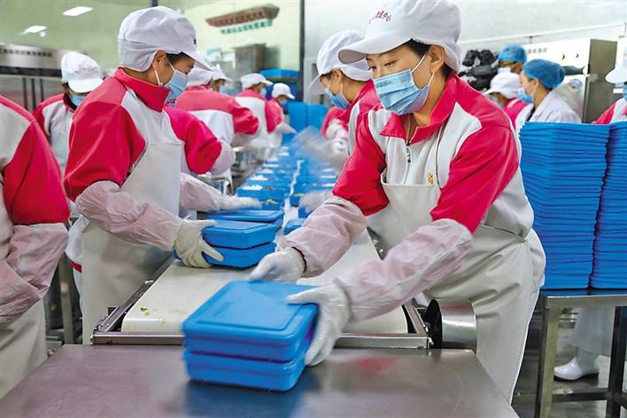配餐中心員工正在打包學(xué)生餐。 黃志武 攝