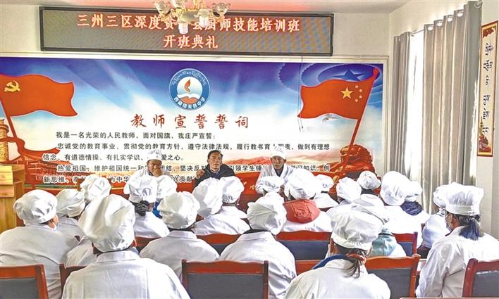 為提高農(nóng)牧民群眾的勞動技能,拓寬就業(yè)渠道,日前,西藏山南措美縣教育局組織中小學(xué)校廚師、建檔立卡貧困戶50人,開展了為期5天的三區(qū)三州職業(yè)教育廚師技能培訓(xùn)。