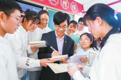 分享結(jié)束后,學(xué)生們圍著孟憲實(shí)開展進(jìn)一步交流,并紛紛請他簽名。“我是一名美術(shù)藝術(shù)生,但是一直對歷史很感興趣。孟老師的講解更是讓我堅(jiān)信,以后要更深入地了解歷史知識,在之后的美術(shù)作品里融入更多的歷史氣息。”高二年級的潘虹羽,中午吃飯時(shí)依然在回味這場共讀活動(dòng)。