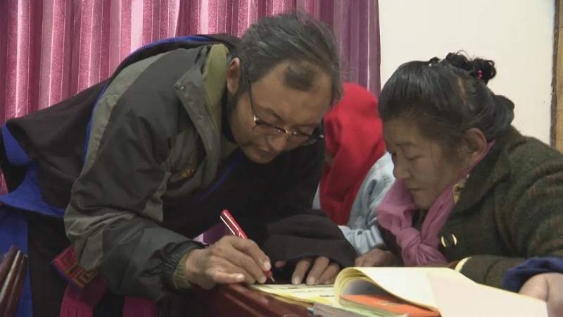 帕那鎮(zhèn)一村宣講員嘎達(dá)耐心的用通俗易懂的本土藏語(yǔ)給這些大齡學(xué)生講漢語(yǔ)拼音課,課堂上有20名來(lái)自附近的牧民群眾,他們不時(shí)低頭做筆記、不時(shí)舉手提問(wèn),生怕錯(cuò)過(guò)每一個(gè)字節(jié)。60歲的次吉是這里年齡最大的學(xué)員,一年中她最期盼的事情就是參加“夜?!睂W(xué)習(xí)。“我小時(shí)候條件不好,沒(méi)有機(jī)會(huì)接受教育,文化水平低,現(xiàn)在條件好了,就來(lái)夜校學(xué)習(xí),老師講得通俗易懂,我感覺(jué)收獲很多?!贝渭獙?duì)說(shuō)。