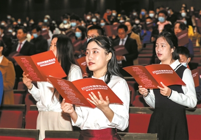 活動現(xiàn)場,北京主會場學生領唱《憲法伴我們成長》,從優(yōu)美的歌聲中體會憲法力量。北京外國語大學黨委書記王定華宣讀了第五屆全國學生“學憲法 講憲法”全國總決賽獲獎名單。