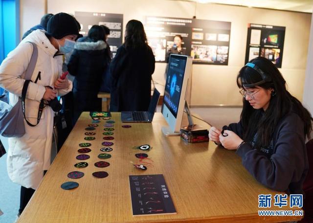 12月15日,觀眾在參觀上海大學(xué)可穿戴技術(shù)與中國非遺刺繡創(chuàng)新實驗工作坊項目。