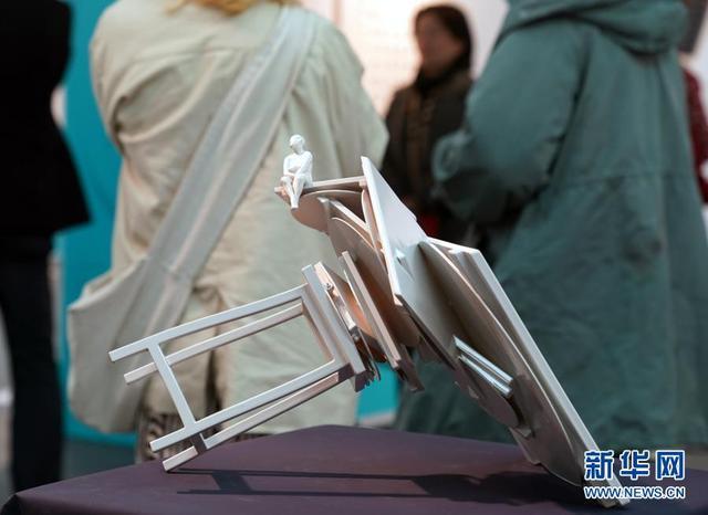 12月15日,參觀者在觀看大學(xué)生繪畫作品。