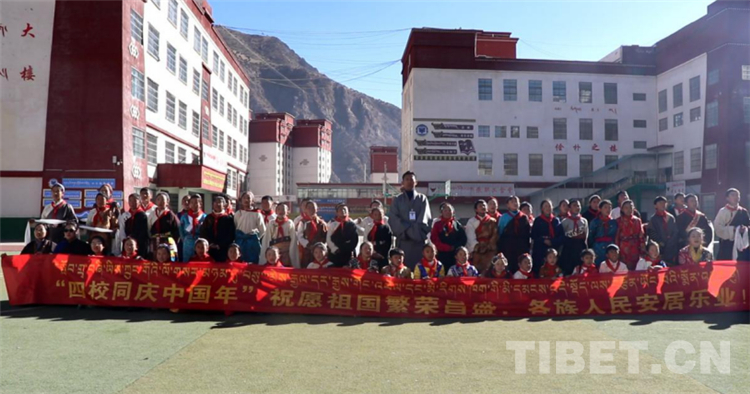 活動(dòng)中,孩子和老師們都穿著民族特有的節(jié)日盛裝,臉上洋溢著幸福的笑容,手舉象征著美好祝福的白色哈達(dá),發(fā)自內(nèi)心地說(shuō)出了“祝祖國(guó)繁榮昌盛”“祝中華兒女合家歡樂(lè)、身體健康、扎西德勒”等純潔而又真切的祝福。