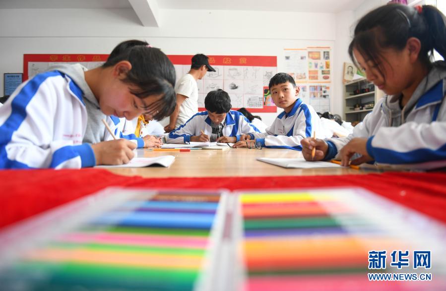 位于芒康縣鹽井納西民族鄉(xiāng)的鹽井中學(xué)學(xué)生在上美術(shù)課(2019年6月5日攝)。鹽井中學(xué)是西藏第一所在鄉(xiāng)村設(shè)立的中學(xué)。新華社記者 晉美多吉 攝