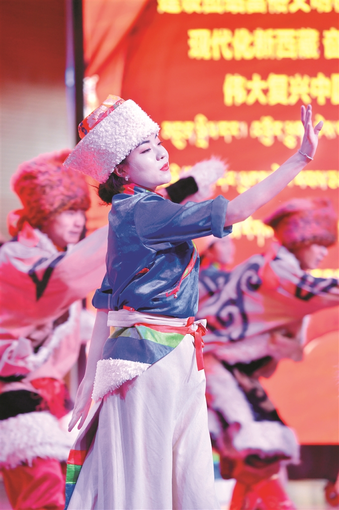 活動現(xiàn)場,演員們?yōu)榇蠹規(guī)砹司实母栉璞硌?。圖片由拉薩融媒視覺組攝
