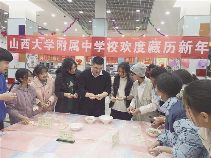 圖為山西大學(xué)附屬中學(xué)師生歡度“雙節(jié)”,動(dòng)手包餃子。 (山西大學(xué)附屬中學(xué)提供)