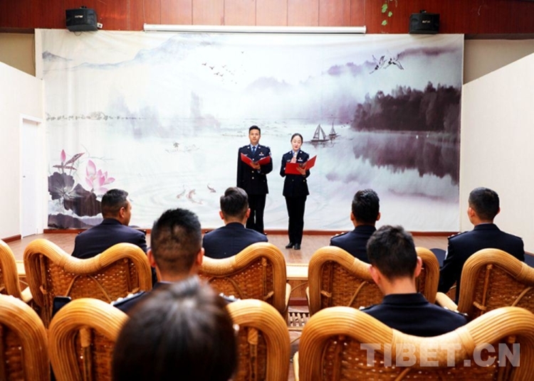 舉辦警營朗讀活動。當民警達瓦卓瑪朗讀完《我把黨來比母親》,全場民警自發(fā)唱起了《唱支山歌給黨聽》?!俺礁杞o黨聽,我把黨來比母親……”每一句歌詞都唱出了西藏各族兒女對黨最真摯的感情。
