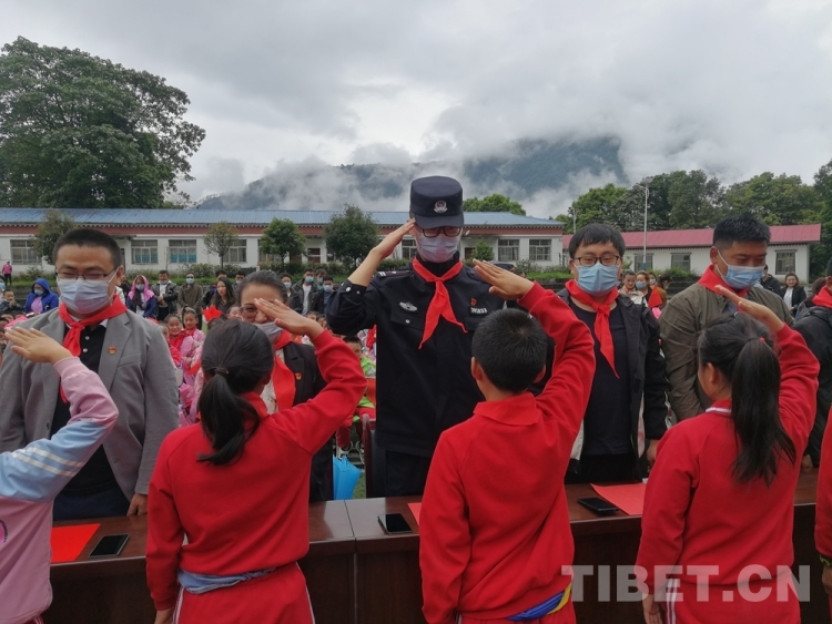 清晨,達(dá)木鄉(xiāng)小學(xué)里,五星紅旗冉冉升起。操場上,邊境派出所全體民警與小學(xué)師生懷著崇高的敬意和無比自豪的心情向莊嚴(yán)的五星紅旗致敬。