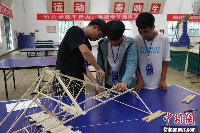 圖為第三屆西藏大學(xué)生結(jié)構(gòu)設(shè)計競賽比賽現(xiàn)場。冉文娟 攝