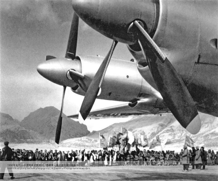 1956年,北京-拉薩航線試航成功,西藏第一座機(jī)場(chǎng)——當(dāng)雄機(jī)場(chǎng)竣工。