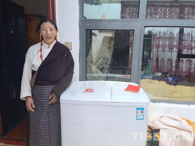 圖為西藏自治區(qū)那曲市色尼區(qū)羅瑪鎮(zhèn)凱瑪村村民美美家收到的中央代表團(tuán)贈送的禮物——大功率洗衣機(jī) 攝影:吳建穎