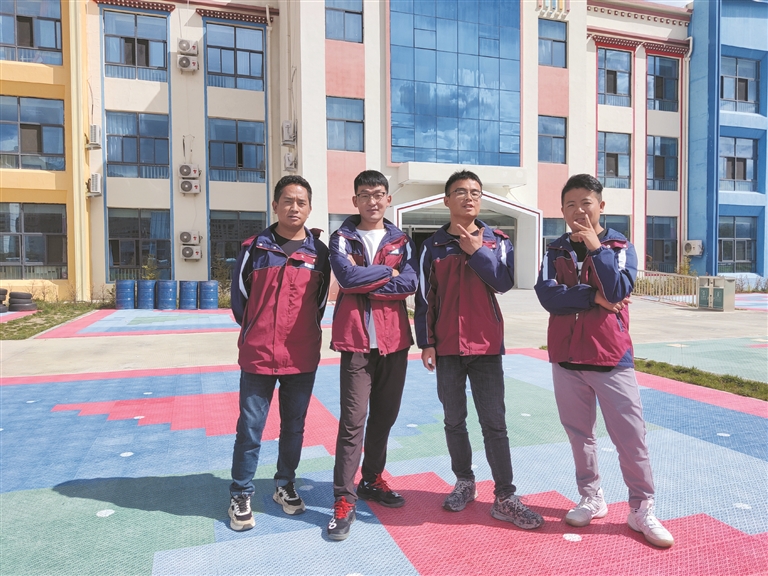 圖為拉薩市江蘇實驗幼兒園4名男幼師合影。 拉薩融媒記者 余洋洋攝