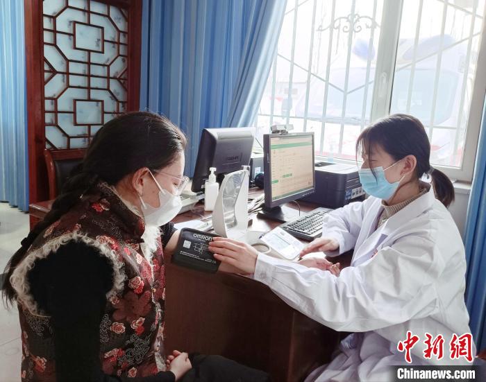圖為醫(yī)務人員為牧民進行檢查。青海大學醫(yī)學部營養(yǎng)健康促進中心 供圖