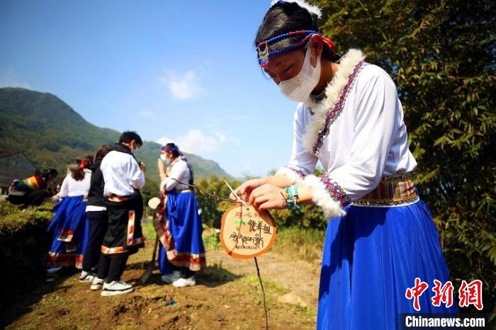 四川阿壩學子在浙江瑞安植樹,并懸掛“同心樹”牌。王志 攝