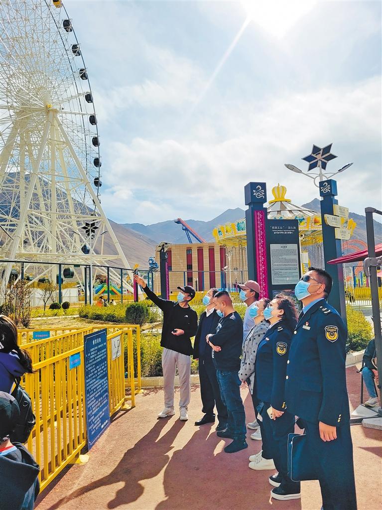 “近年來,公司為確保游樂設施安全,每周有周檢,每月有月檢,每年有年檢,并邀請自治區(qū)特種設備檢驗所以及中國特種設備檢測研究院進行監(jiān)督檢查。拉薩市市場監(jiān)督管理局和堆龍德慶區(qū)市場監(jiān)督管理局還會不定期對園區(qū)進行檢查,抽查日常各項檢查指標是否落實到位?!蔽鞑乩寿愊笮勖蓝湮穆眯℃?zhèn)游樂園負責人王代庚說。