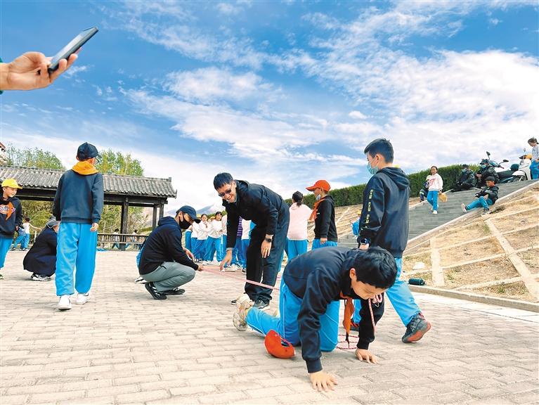 圖為拉薩市第一小學學生們在老師的帶領下開展戶外活動。
