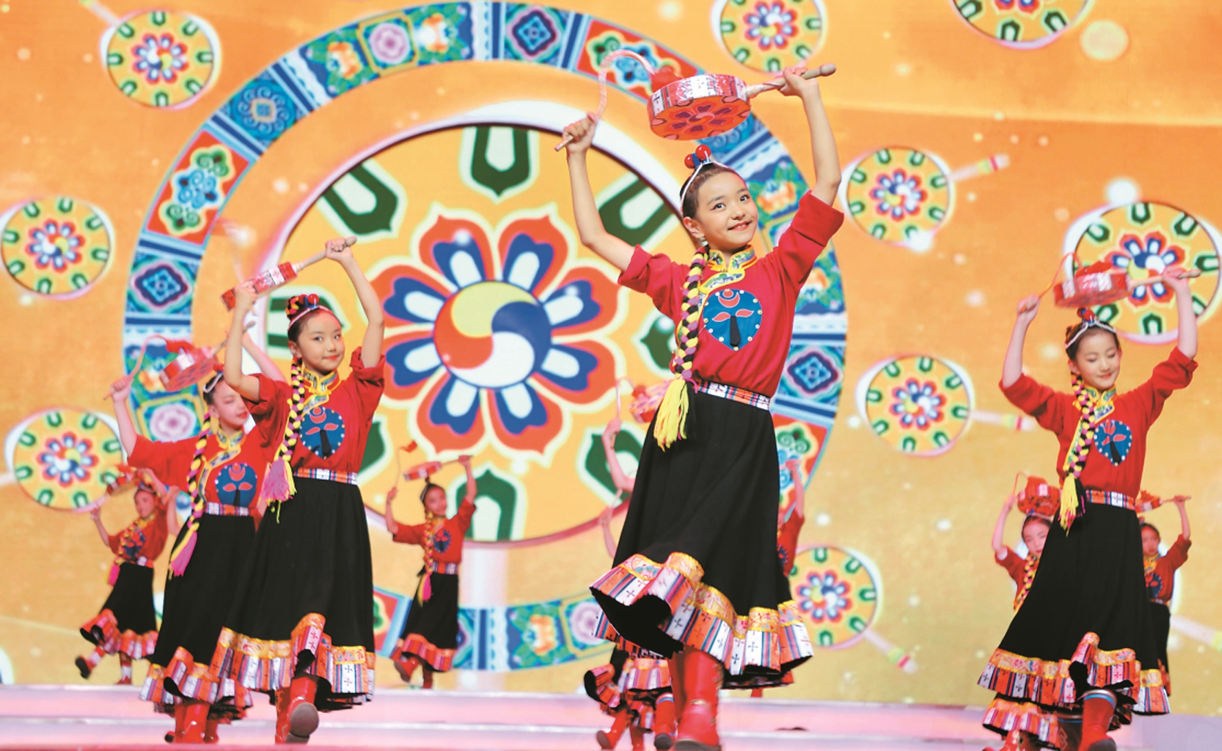 圖為拉薩市實(shí)驗(yàn)小學(xué)學(xué)生表演的《格?;ㄩ_向未來》文藝節(jié)目。西藏日報(bào)特約記者 格桑倫珠攝