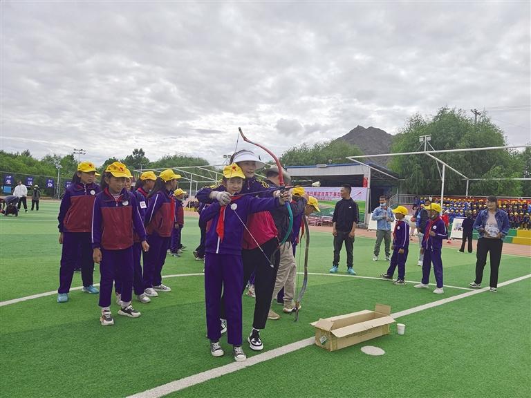 近日,由西藏自治區(qū)體育局主辦,自治區(qū)社體中心承辦,自治區(qū)馬術(shù)協(xié)會和曲水縣達嘎鎮(zhèn)小學(xué)協(xié)辦的2022年送民族傳統(tǒng)體育下基層活動走進拉薩市曲水縣達嘎鎮(zhèn)小學(xué)。校園操場上,學(xué)生們精神抖擻、全神貫注,立身對靶,手握弓把正中央,在老師的號令聲中,拉動弓弦,利箭破風而出,命中靶位……
