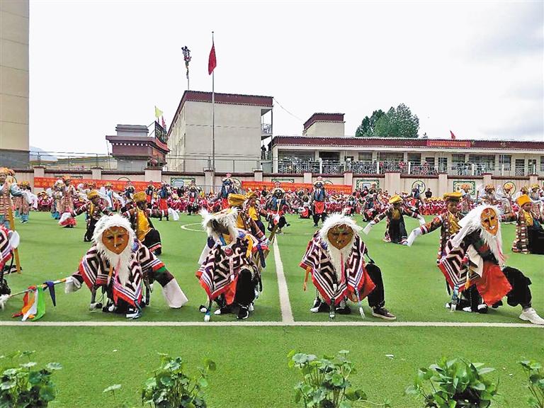 據(jù)了解,娘熱小學(xué)藏戲興趣班總共有120余名學(xué)生,通過學(xué)校的培養(yǎng)和孩子們的不斷努力,孩子們經(jīng)常參加校內(nèi)外舉行的各項(xiàng)演出活動(dòng)。下一步,藏戲興趣班還將拓展朗瑪、堆諧等傳統(tǒng)民族舞蹈教育,讓學(xué)生在傳統(tǒng)文化中浸潤(rùn)成長(zhǎng)。