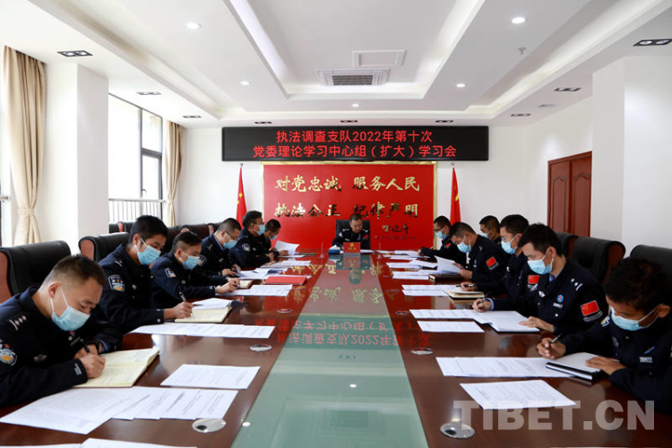 圖為西藏邊檢總站執(zhí)法調(diào)查支隊(duì)黨委理論學(xué)習(xí)中心組專題學(xué)習(xí)黨的二十大精神 攝影:劉明陽(yáng)