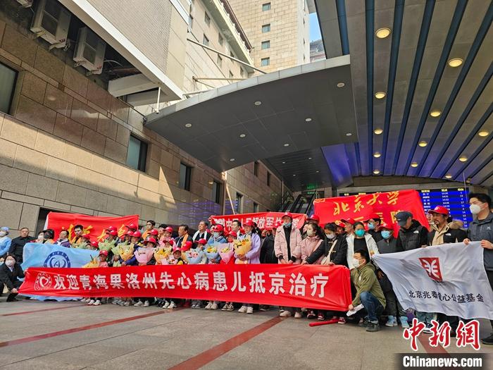 3月19日,來自青海省果洛藏族自治州的17名先天性心臟病患兒在家屬等人陪同下,乘坐火車抵達(dá)北京西站,將在北京的四家醫(yī)院接受免費(fèi)手術(shù)治療。圖為接站現(xiàn)場。中新社發(fā) “同心·共鑄中國心”組委會供圖