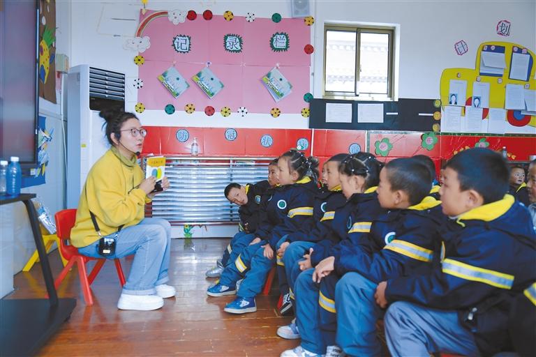 圖為工作人員給孩子們講故事。 本報(bào)記者 裴聰 攝
