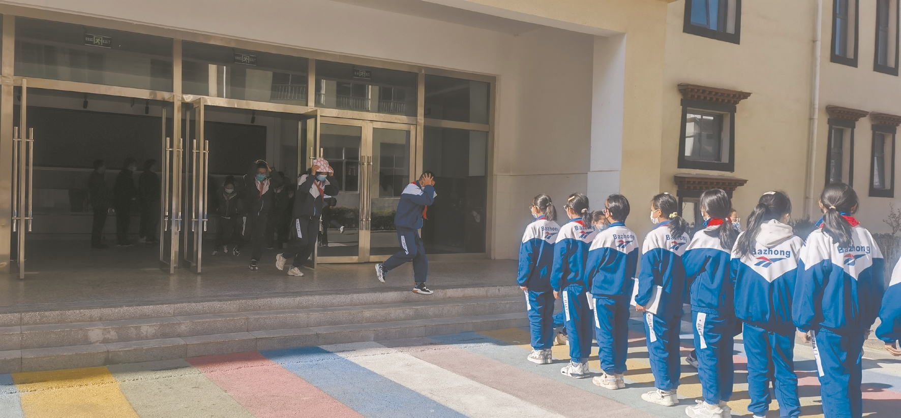 圖為在“地震科普、攜手同行”主題活動中,拉薩市第八中學(xué)師生進行地震應(yīng)急疏散演練。 拉薩融媒記者 楊 璐攝
