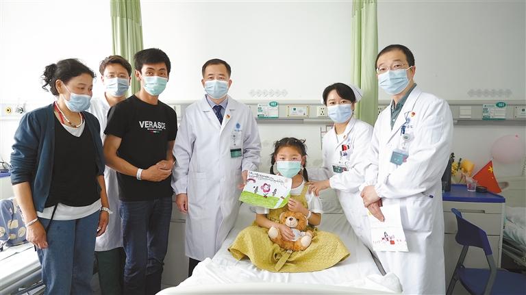 圖為武漢協(xié)和醫(yī)院醫(yī)護(hù)人員術(shù)后看望病患兒及其家屬。通訊員 衛(wèi)未 攝