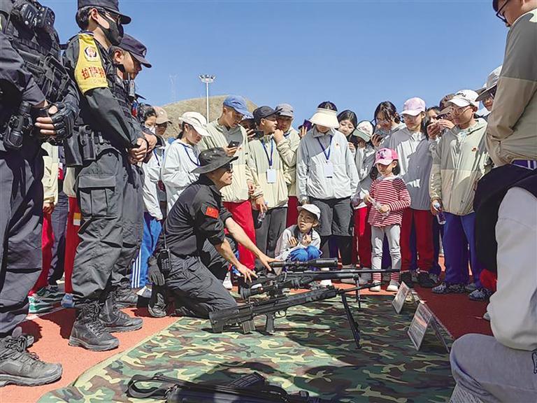 學(xué)生們近距離體驗(yàn)特警裝備。圖由團(tuán)區(qū)委提供