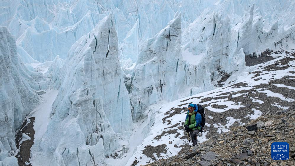 圖為高山向導次仁走過珠峰東絨布冰川。新華社記者 晉美多吉 攝