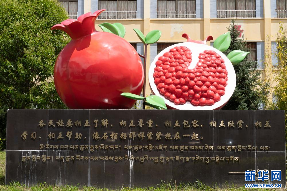 “石榴籽一家親”雕塑。新華網(wǎng)發(fā) 蘇思源 攝