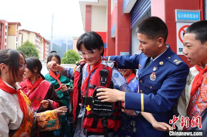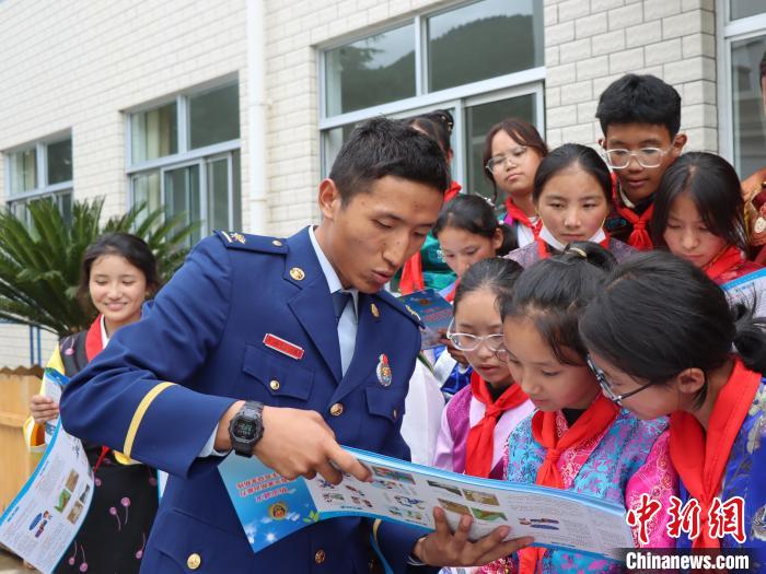 圖為消防員正在為學(xué)生普及防災(zāi)減災(zāi)知識(shí)。西繞拉翁 攝