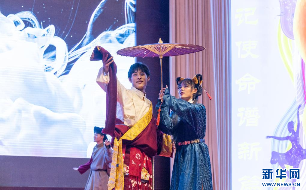 開幕式現(xiàn)場學(xué)生們正在表演服裝秀節(jié)目(9月21日攝)。丁增尼達 攝