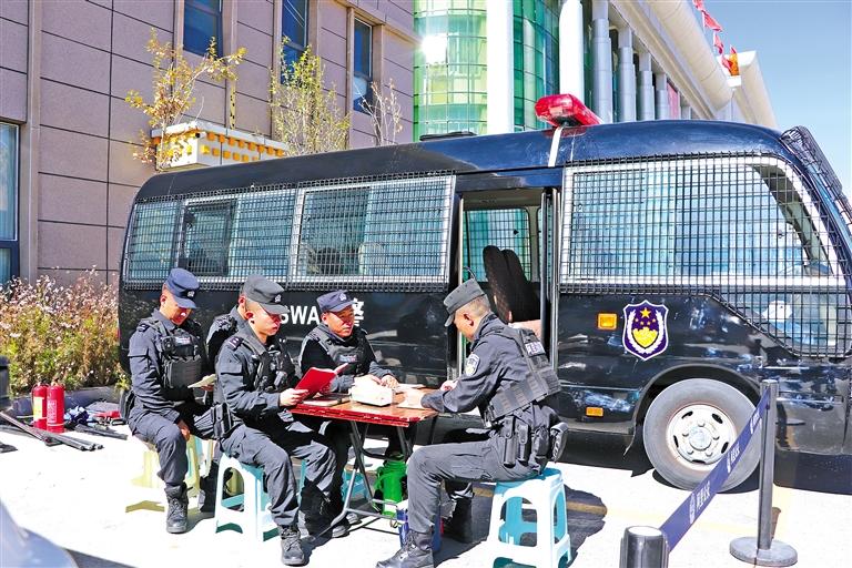 執(zhí)勤民警利用工作間隙開展主題教育學習研討。記者 達珍 攝