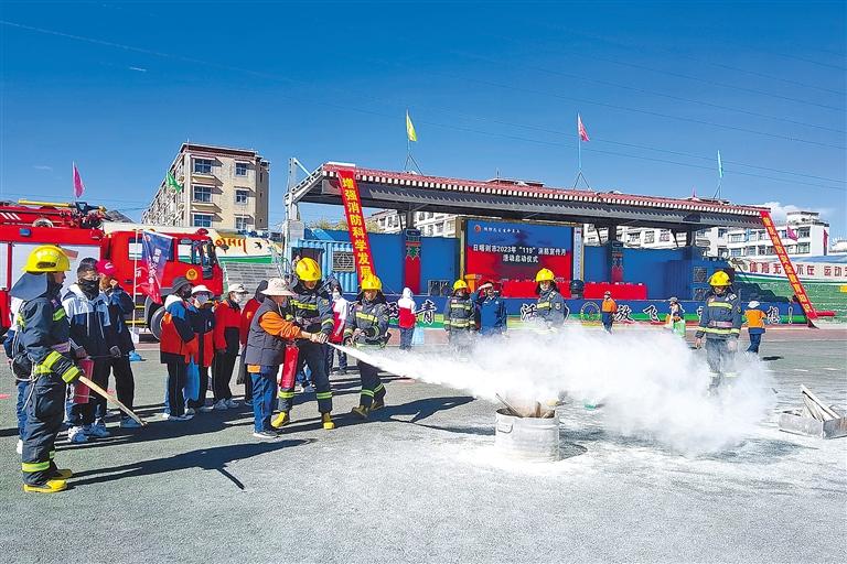 11月5日,2023年日喀則市“119”消防宣傳月活動啟動儀式在日喀則市第三高級中學舉行。日喀則市消防安全委員會成員單位及師生代表共1500余人參加活動。活動中,消防技能挑戰(zhàn)、消防科普互動、消防裝備展覽、改革轉隸五周年成果展、消防技能展示等,吸引了大批師生近距離體驗消防、認識消防,進一步筑牢校園消防安全“防火墻”。
