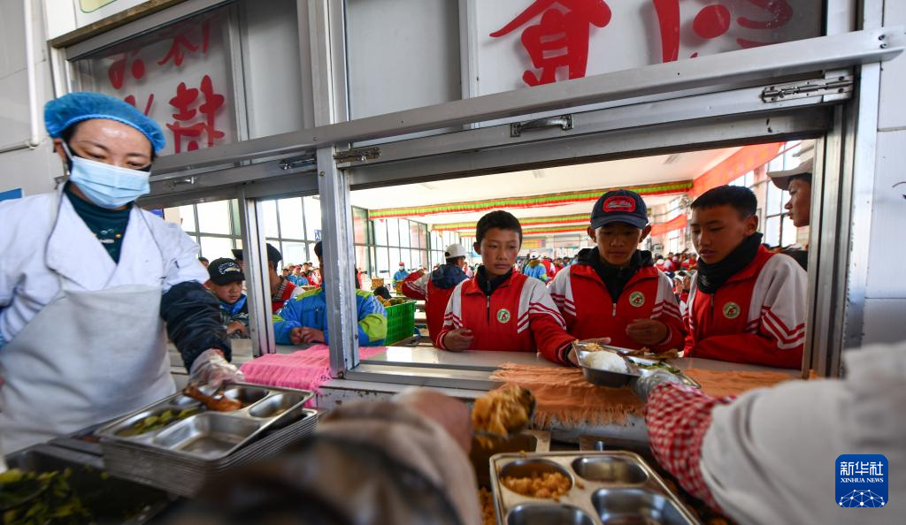 當(dāng)雄縣中學(xué)的學(xué)生在學(xué)校食堂打午飯(11月10日攝)。新華社記者 晉美多吉 攝