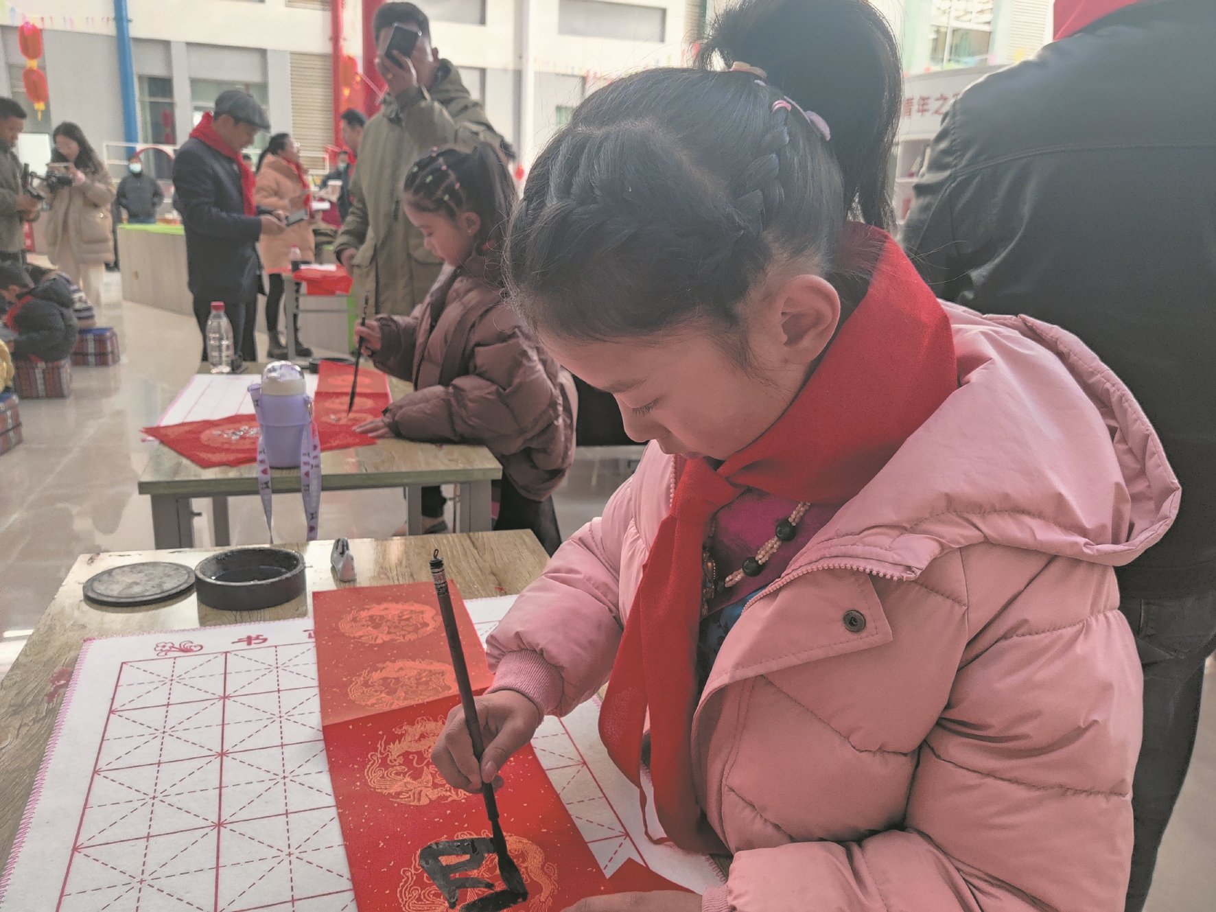 圖為小書法家們現(xiàn)場(chǎng)展示書法作品。拉薩融媒記者 余洋洋攝