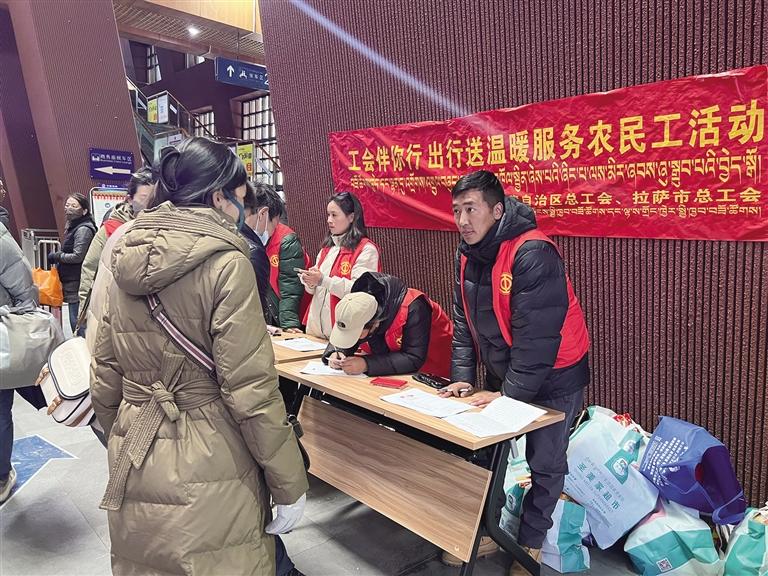 西藏拉薩市總工會(huì)為返鄉(xiāng)農(nóng)民工開(kāi)展志愿服務(wù)