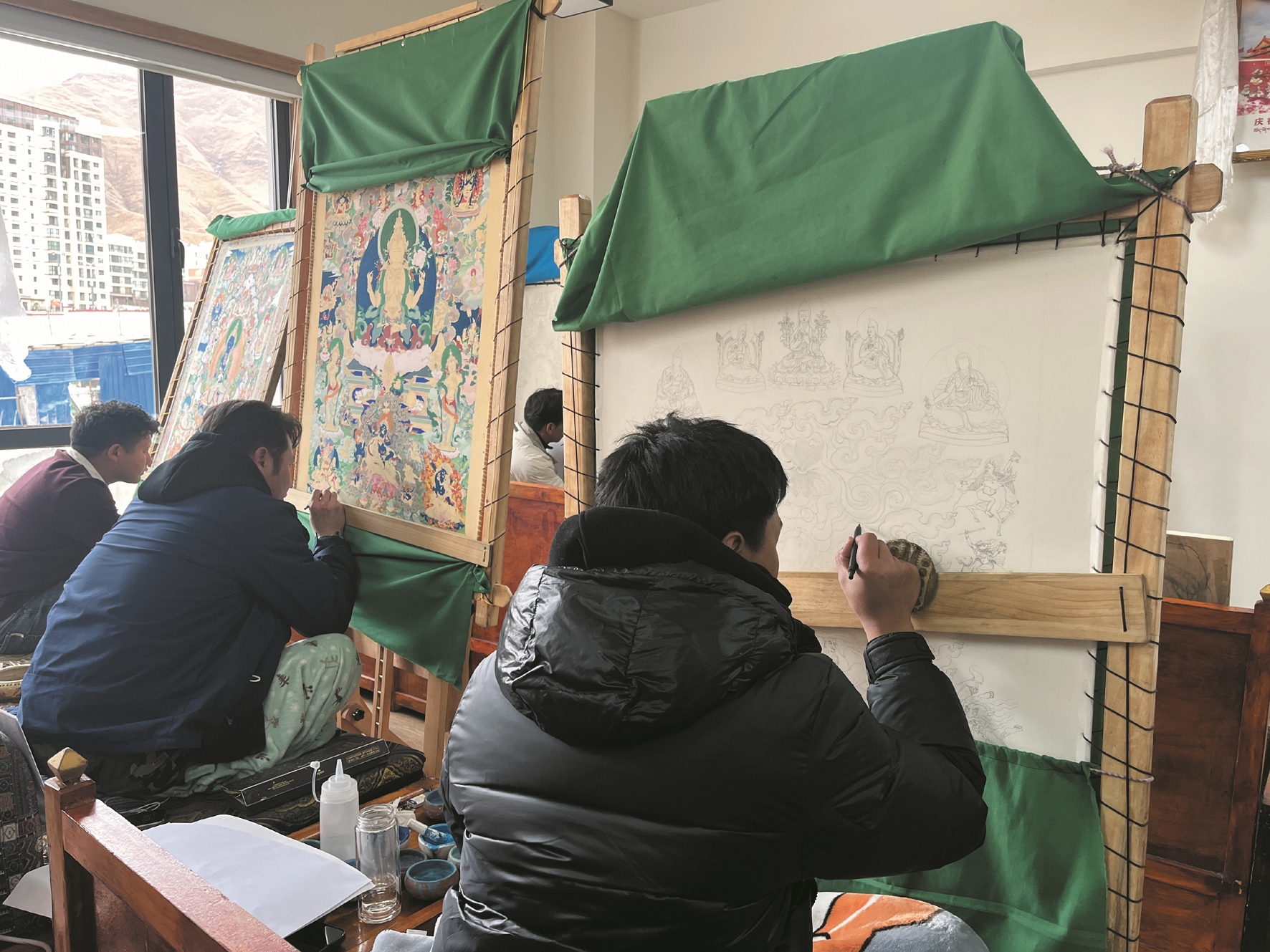 圖為學生們正在畫唐卡。拉薩融媒記者 莫瑞英攝